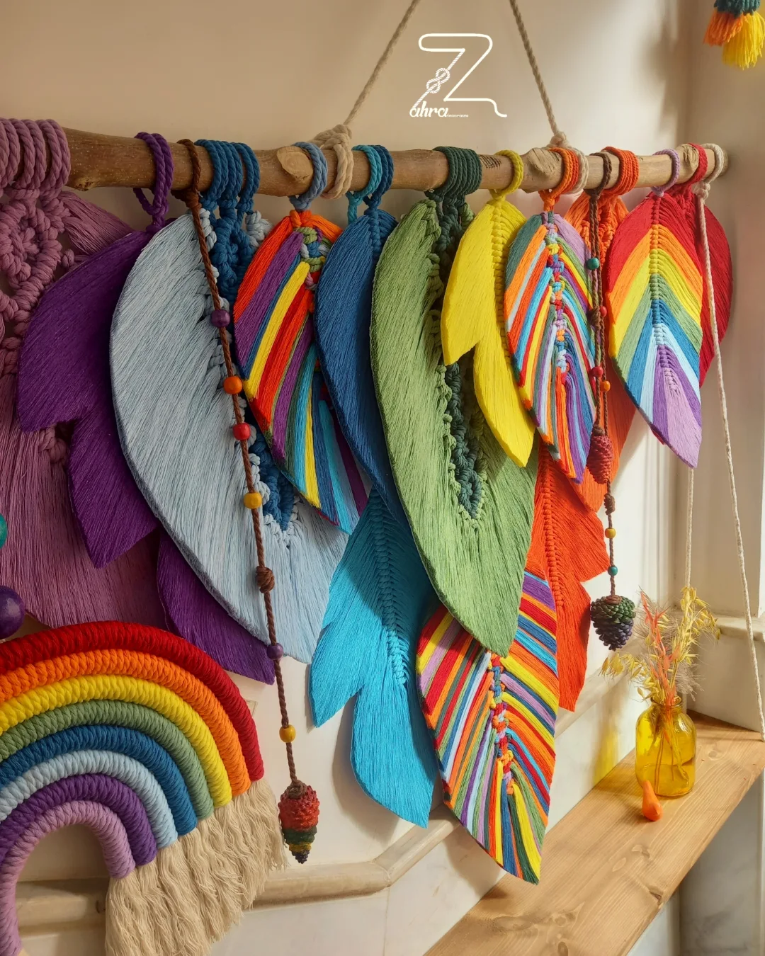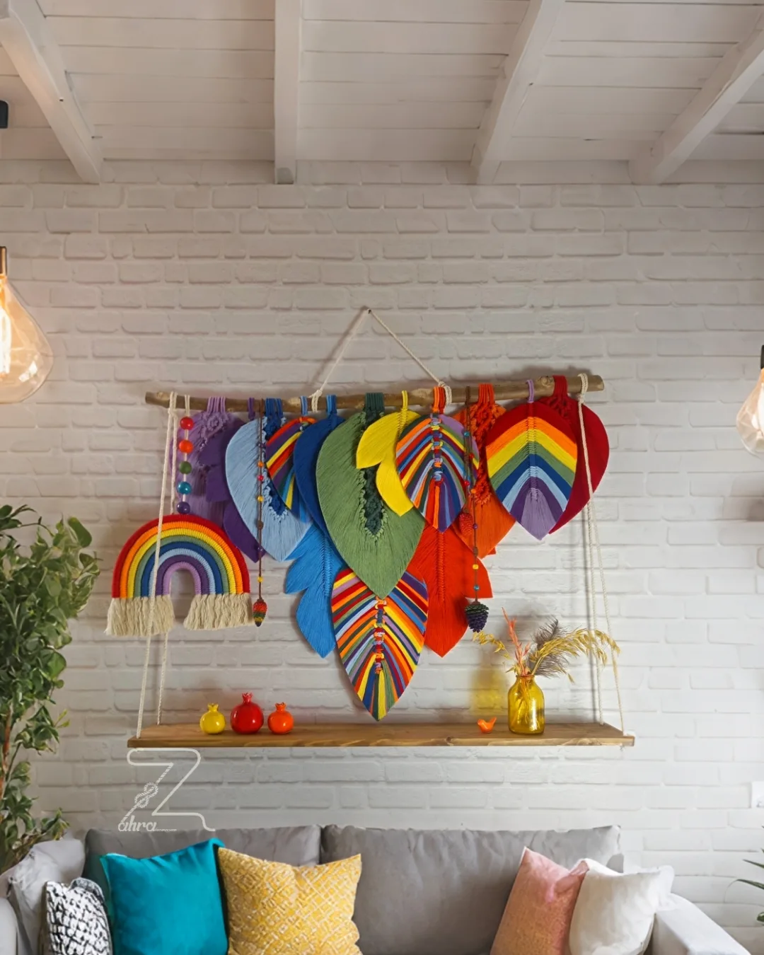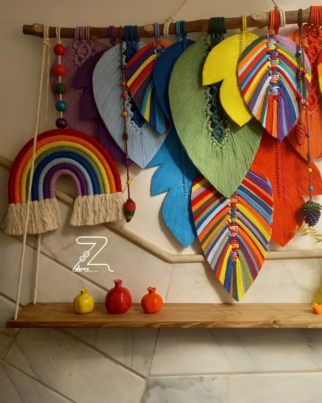 وقتی حال دلت رنگی باشه، دستات هم بیاختیار دنبال نخ و گره و چوب میره! به نظرم هنر مکرومه همین جادوشه با دستهات میتونی حال خوب بسازی و اون رو به خونه و حتی دل بقیه هم پخش کنی.، حتی با چند تا نخ رنگی و یه تکه چوب ساده. این آویز رو با کلی عشق و صبر و بازی با رنگها بافتم، چقدر چیزهای ساده میتونن خونه رو پر از شادی و انرژی کنن مگه نه؟ این آویز رنگینکمان گوشه خونه تون میشه نماد حال خوب… امیدوارم حال دلتون همیشه مثل این برگها پر از رنگ و آرامش باشه ابعاد آویز شلف دار : 100×85 ( پست قبل همین آویز با طیف رنگی دیگه و بدون شلف کار شده ) . . .