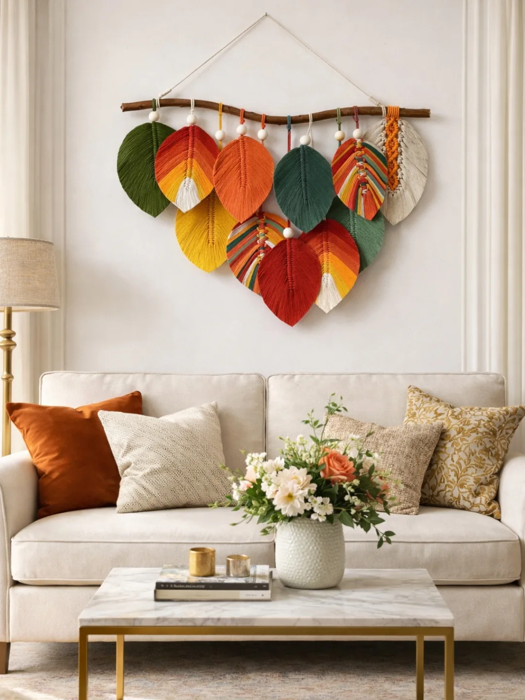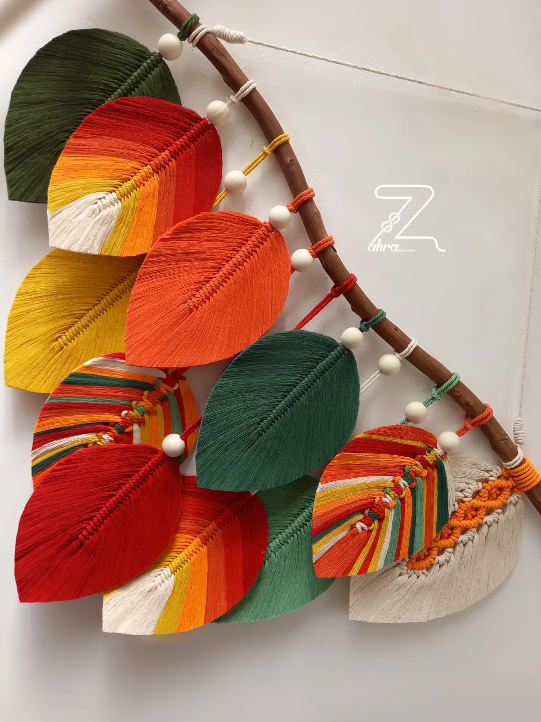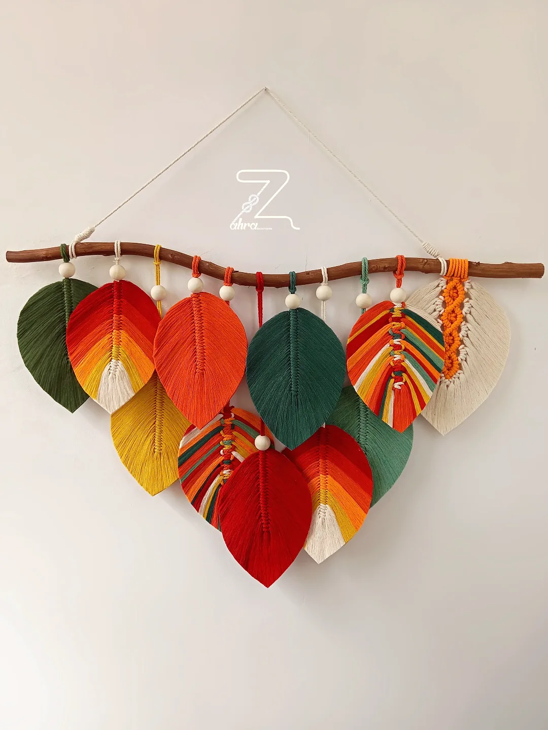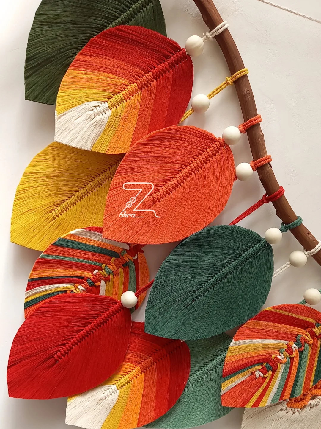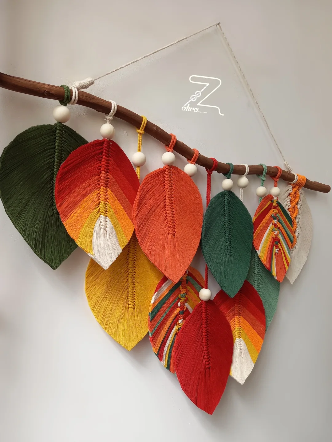 آویز برگ با دیزاین مهره های چوبی